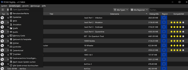 Übrigens gibt PCSX die Kompatibilitätsschwierigkeiten mit einer 64-MByte-Karte um einiges gravierender an. Herumexperimentiert habe ich damit noch nicht. Ich besitze zwar eine für meine echte PS2, die nutze ich allerdings nur als Backup-Medium.